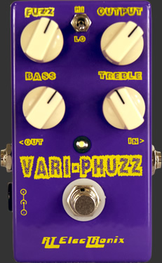 The Vari-Phuzz is an all in one; delivering fuzz tones from a slight breakup all the way to a completely obscene phuzz! And in the spirit of RT Electronix: it’s touch-sensitive and –believe it or not—it cleans up just by backing off your guitars volume knob! In “LO” mode, The Vari-Phuzz offers nice vintage sounding breakup and classic fuzzing, but flip it into “HI” mode, and you’ll be rocking harder than may be socially acceptable! Bass and Treble tone controls allow for full-bandwidth tone shaping and the ability to make a wide variety of fuzz tones. If you’re looking for a great sounding fuzz with enough flexibility to earn a space on your pedalboard…the Vari-Phuzz will give you “Satisfaction” and then some!